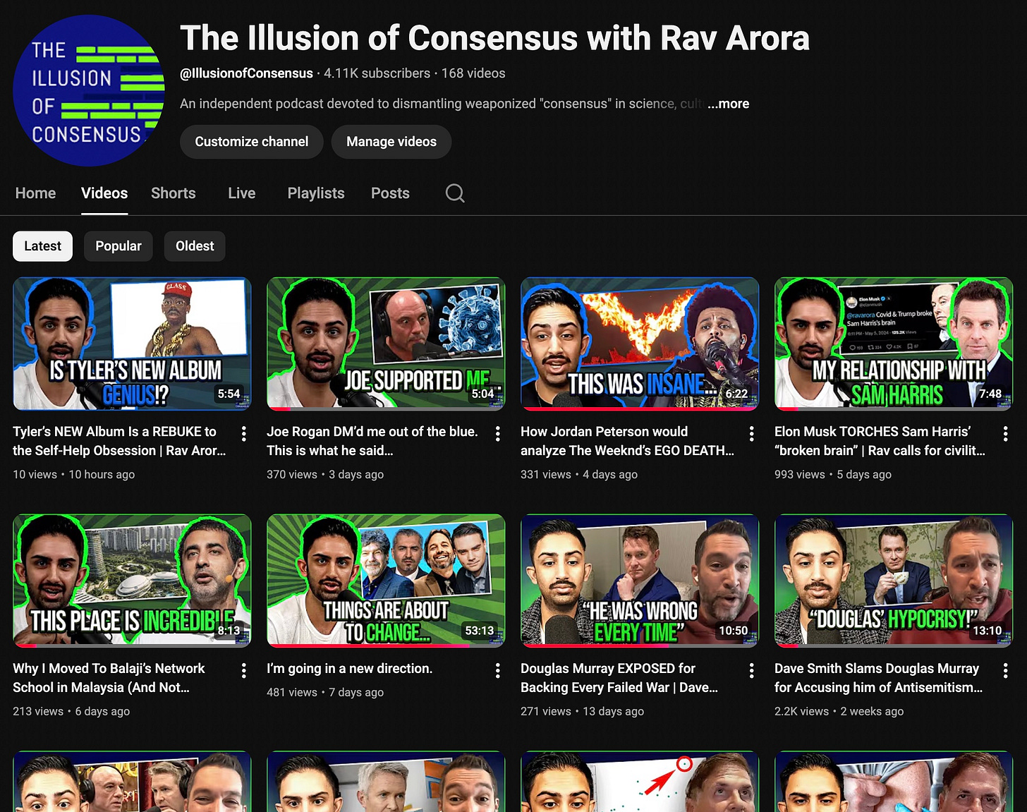 Link: https://www.youtube.com/@IllusionofConsensus/videos