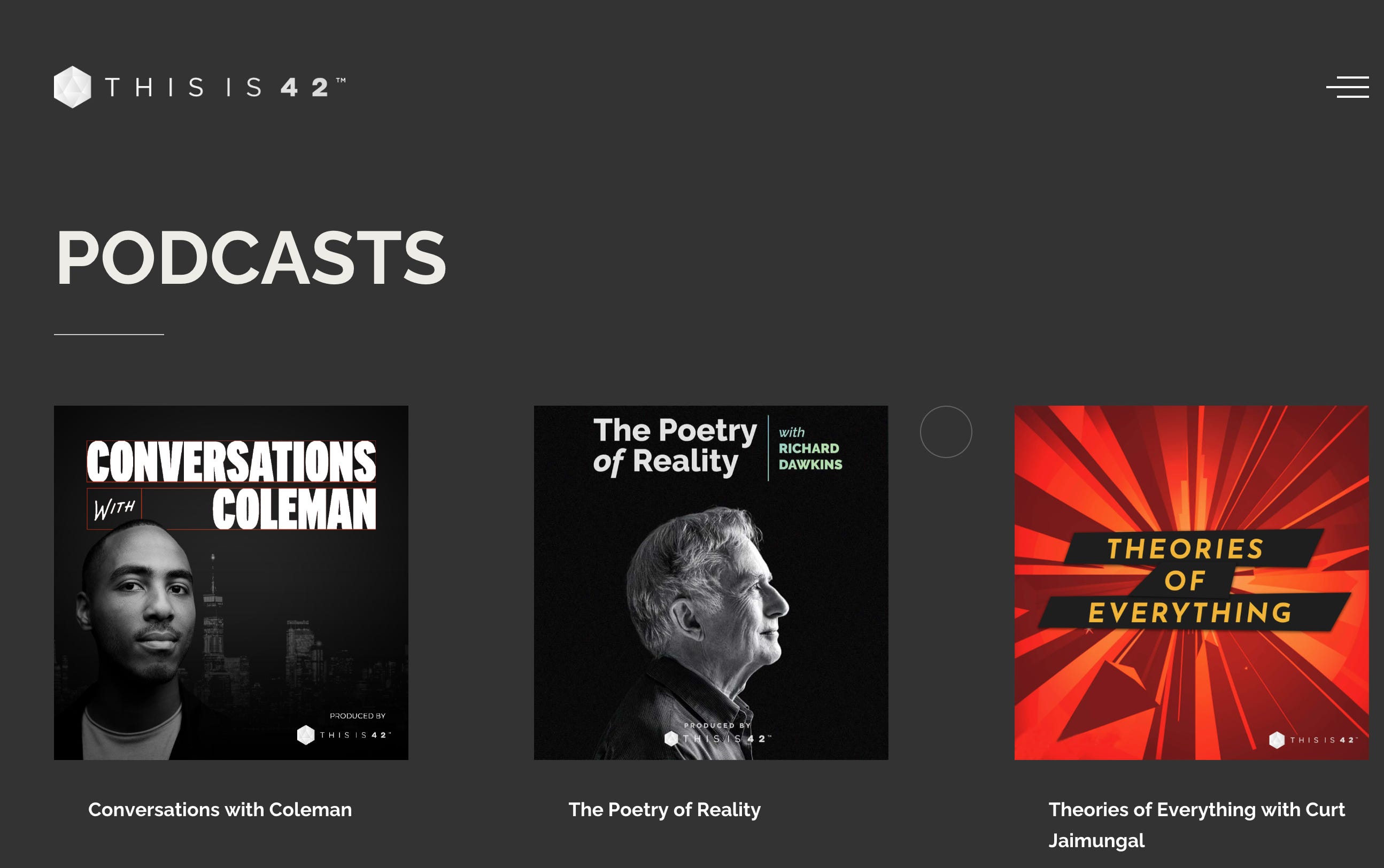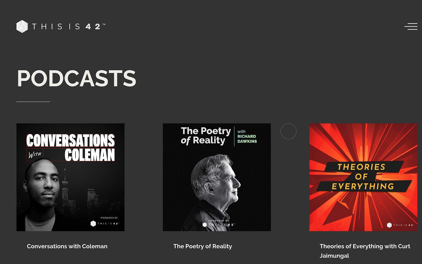 We looked around for the best podcast production company options and we selected This Is 42 - a leader in the industry, producing podcasts for Coleman Hughes, Richard Dawkins, Steven Pinker, and others.