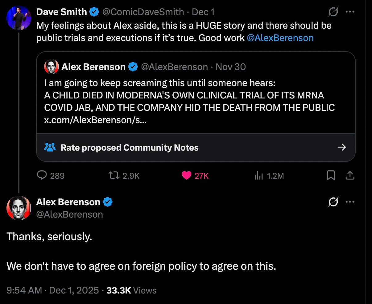 I also felt this was kind of apropos to post since Dave publicly commended Alex’s vaccine reporting recently despite Alex’s recent criticisms of Dave: